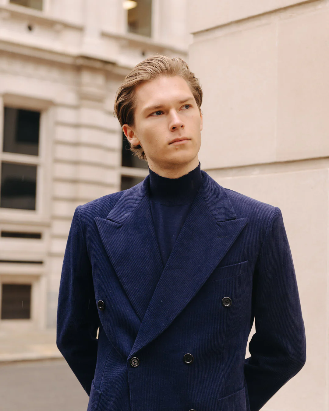 The Basel Blazer is made using a splendid Indigo-Blue velvet corduroy cloth. A perfect choice to keep stylish and warm during the winter.