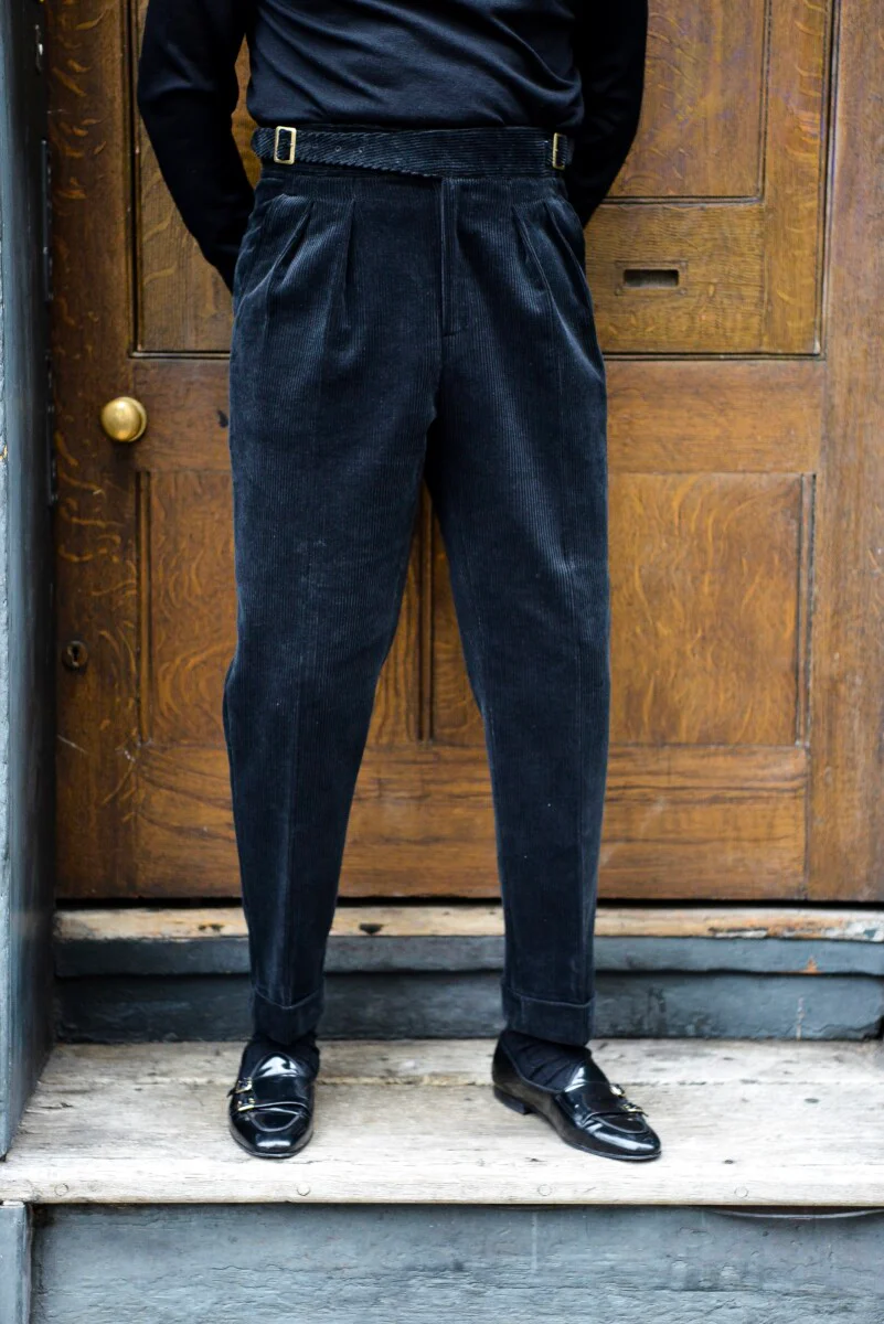 The Basel Gurkha pants are an edgy yet elegant addition to our collection. Made with a Black velvet corduroy cloth these pants are perfect dressed up and can be dressed down with sneakers for a more casual look. These Gurkha Pants are the perfect statement piece for the modern mans wardrobe.