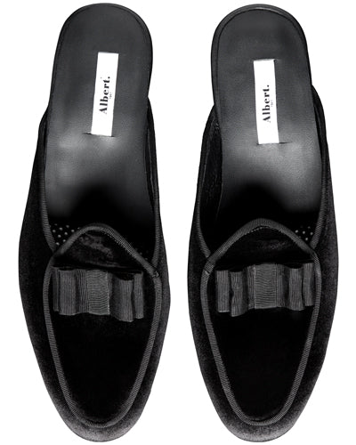 The Monaco Mules are made handmade from Black Velvet. The loafer design is a classic Tuxedo style incorporated with the Belgian slipper style. These Mules are a must have for the stylish traveling Man as its perfect for vacations & dressed up occasion with the flexibility to dress them down for any casual outing.