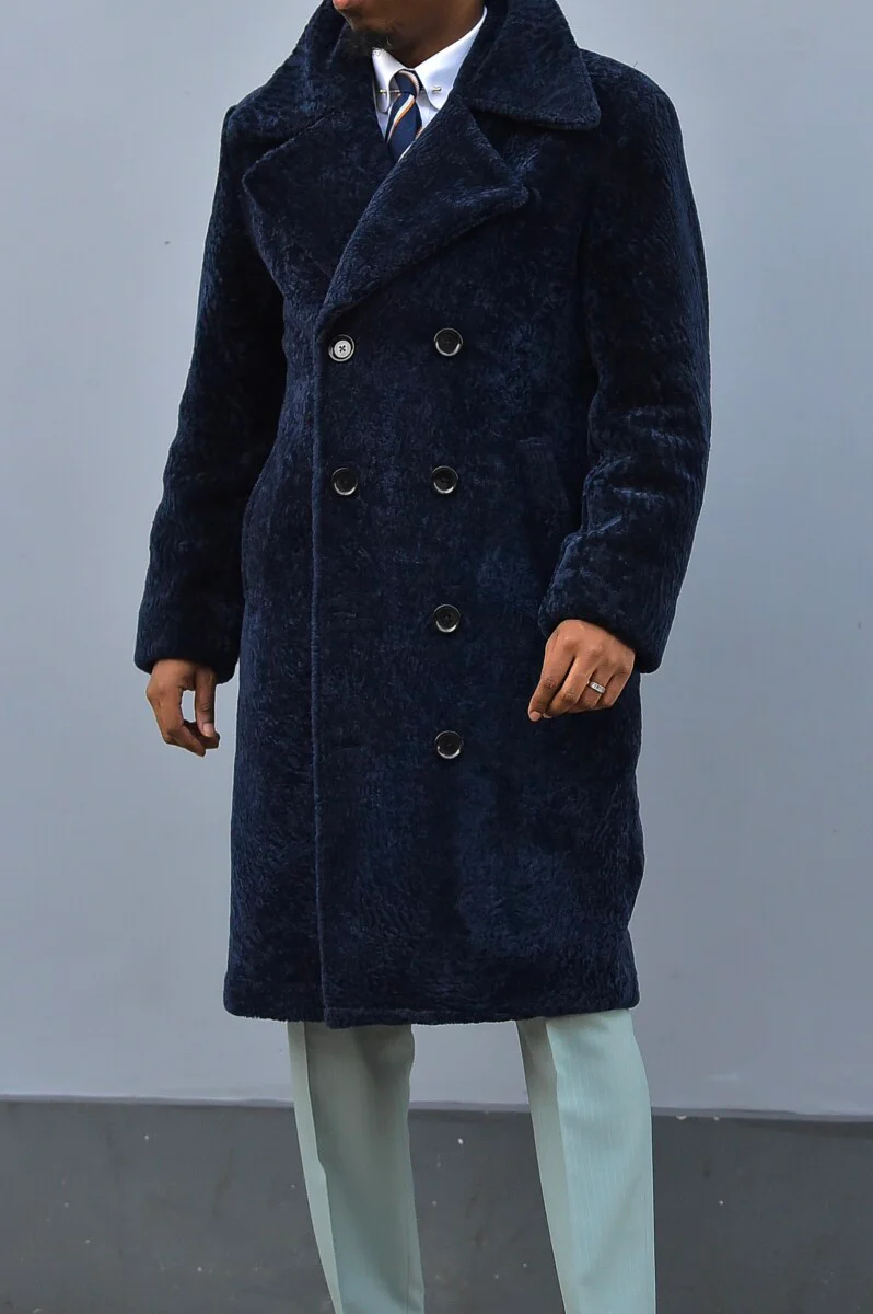 The Shearling Teddy Coat is a classic teddy coat. Crafted from navy blue lamb shearling. This coat is a timeless classic coat that screams elegance and luxury. Not only does it serve the purpose of keeping you warm it is a uniquely stylish winter coat and a great staple for the modern mans wardrobe.